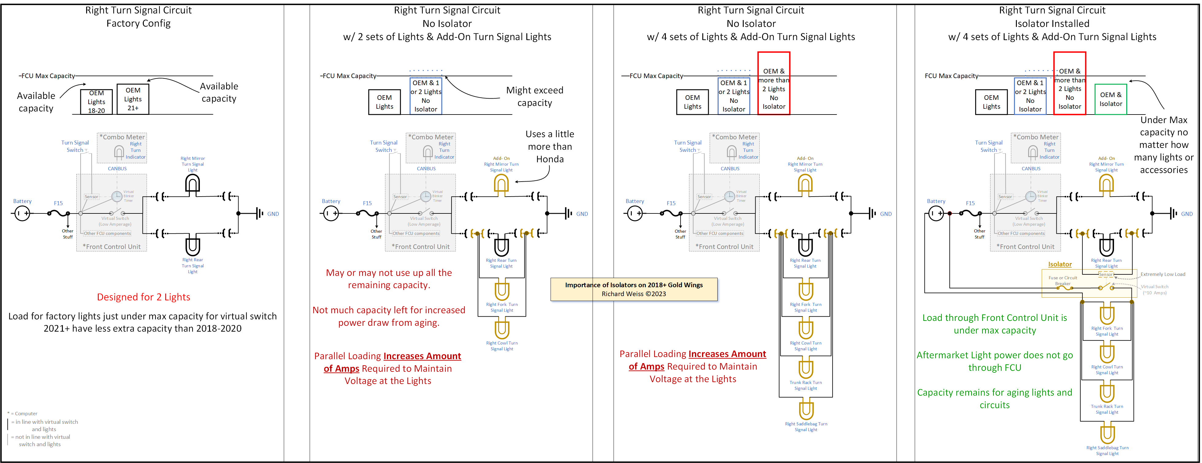 Of note: Honda changed 2021+ bikes, either reducing the capacity, or the new rear lights use more power, or both. The result is that the amount of power available between the lights and FCU max capacity is smaller than the 2018 to 2020 bikes.
